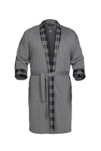 Hommikumantel on hästiistuva kimonolõikega, hallist pehmest ja kergest puuvillafliisist.