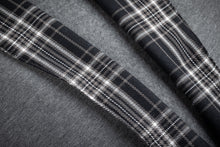 Revääridel ja varrukasuudes on musta-valgeruuduline pehme flanellkangas. Siseõmblused on viimistletud kandiga. Vöö on kinnitatud seljale, mõlemal esihõlmal on pealeõmmeldud tasku.
